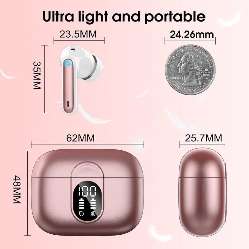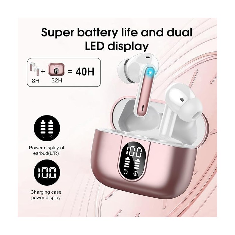 Wireless Earbuds, Bluetooth 5.3 Headphones In Ear with 4 ENC Noise Cancelling Mic, 40H Playtime Bluetooth Earphones, Mini Deep Bass Stereo Ear Buds, IP7 Waterproof Wireless Headphones, LED Display