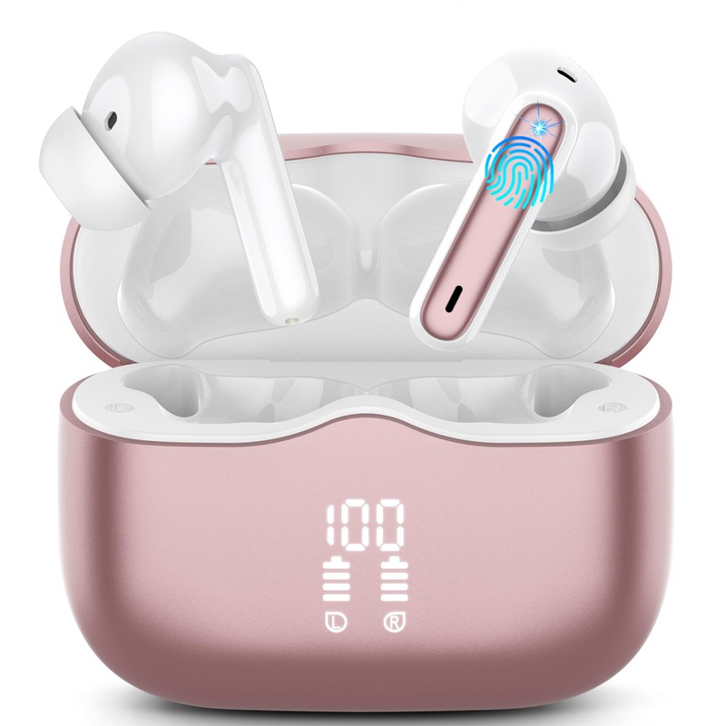 Wireless Earbuds, Bluetooth 5.3 Headphones in Ear with HiFi Stereo Deep Bass, 4 ENC Noise Cancelling Mic Wireless Earphones 40H Playtime, Bluetooth Earbuds Dual LED Display, IP7 Waterproof, Rose Gold