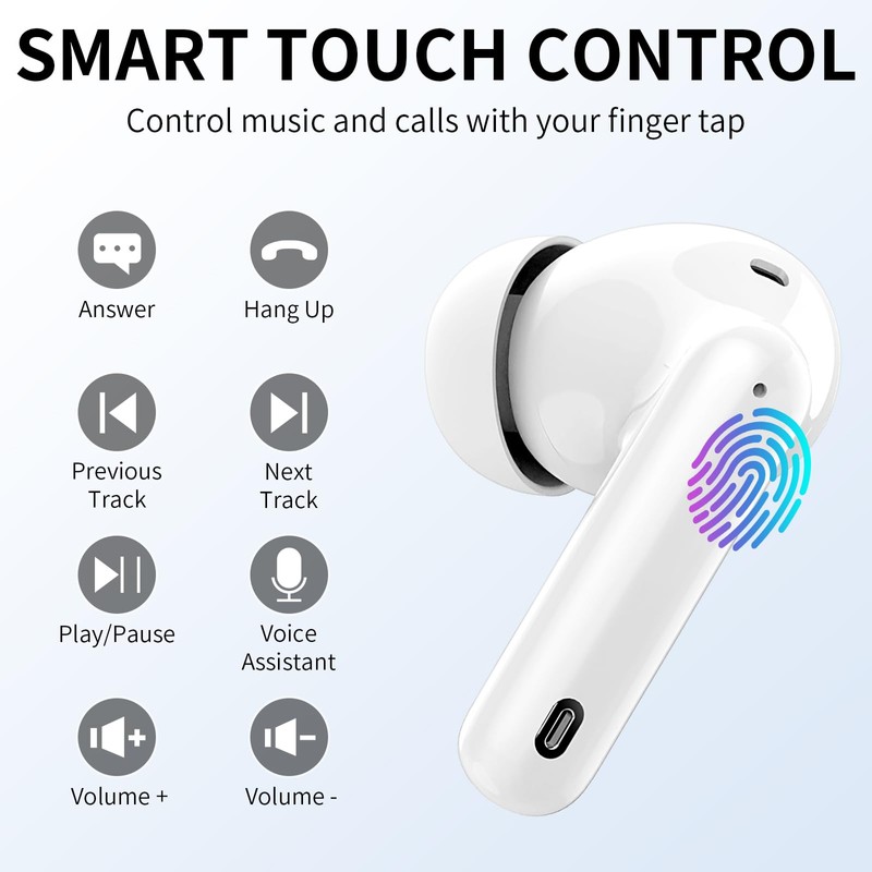 - LED Power Display : The LED display on the charging case shows you the charge level of the case as well as the wireless earphones, so you can precisely control the charge level of your headphones wireless for your convenience on the go. Simply tap on the earbuds wireless bluetooth to skip songs, play/pause music, answer/hang up phone calls, activate voice assistant, all without taking out your phone.