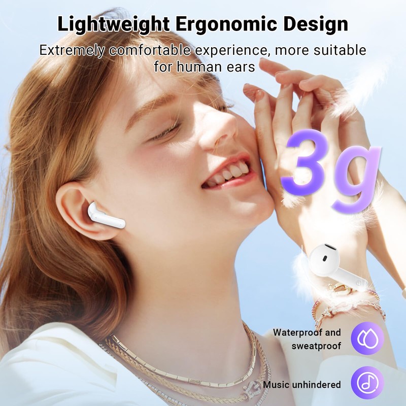 - ENC call noise reduction/Hifi : Wireless earbudsadopts hybrid ENC dual microphones, which can passively suppress 80% of background noise, providing you with high-quality and clear calls whether on a busy street or in a cafe. earbuds uses 13mm dynamic coil and graphene TPU composite diaphragm to provide dynamic treble and deep, rich bass, reproducing the pleasure of the music scene and immersing you in it