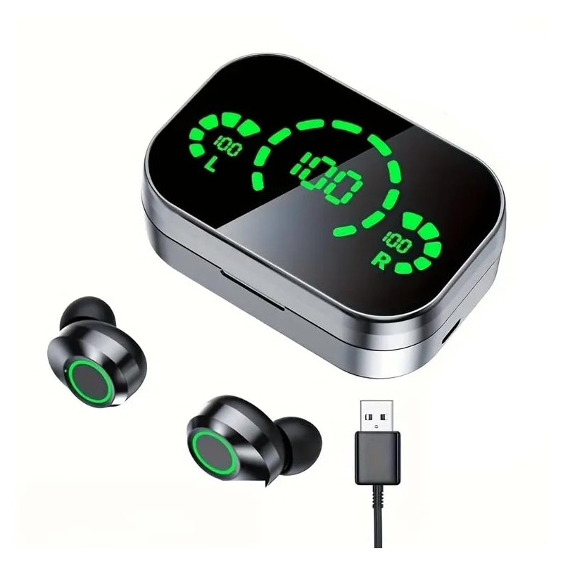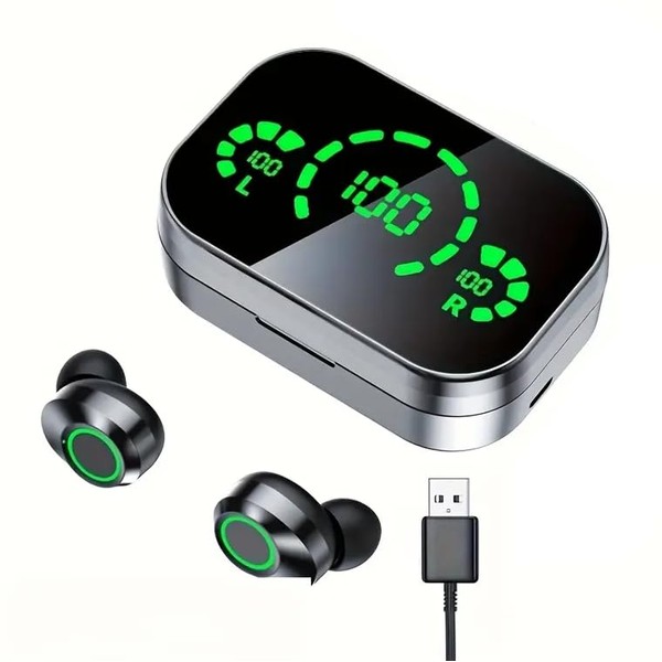- Digital LED Display: On-screen battery percentage for each earbud so you always know how much charge remains USB Type-C Fast Charging: Quick and reliable power-up so you spend less time waiting and more time listening Dual In-Ear Design with Open-Fit Comfort: Ergonomically engineered for all-day wear without fatigue High-Fidelity Sound: Crisp highs, deep mids and punchy bass—ideal for music lovers, gamers and professionals Motion-Activated Controls: Automatically wake up or pause playback simply by inserting or removing an earbud Theatre Mode: Enhanced surround-sound experience for movies and games—feel every detail come to life