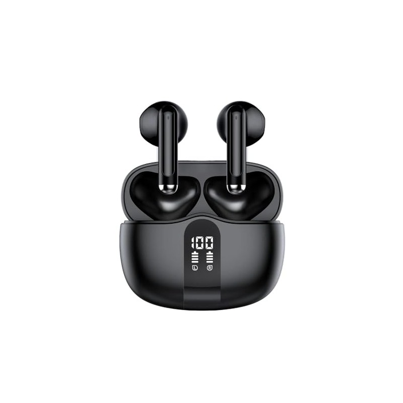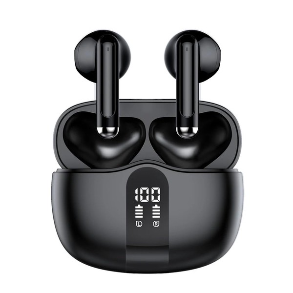 Wireless Earbuds with LED Display, Ergonomic Half in-Ear Design, 24Hr Battery Life, Smart Touch Control, USB-C Fast Charging, Black