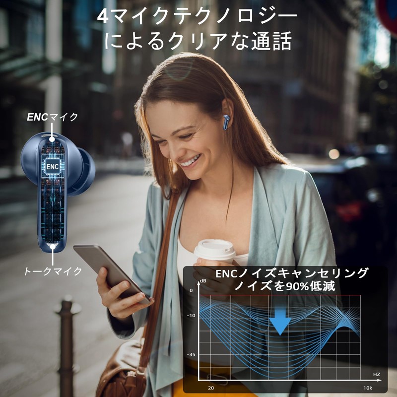 Wireless Earphones, 2025 New Model, Bluetooth 5.4, Automatic Pairing, 48 Hours Playtime Hi-Fi Sound Quality, Small / Lightweight, Built-in Microphone, Hands-free Calling, ENC