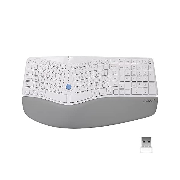 Wireless Ergonomic Split Keyboard with Cushioned Palm Rest Against Carpal Tunnel, DELUX [Standard Ergo] Keyboard Series, Multi-Device Connection, Compatible with Windows, Mac OS (GM901D-White)
