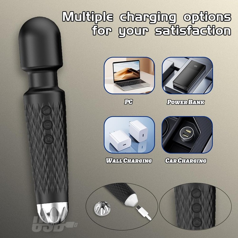 - This hand-held body massager is easy to use. It can be charged by flicking the bottom cover. It comes with an easy-to-use type-c charging cable and a long battery life