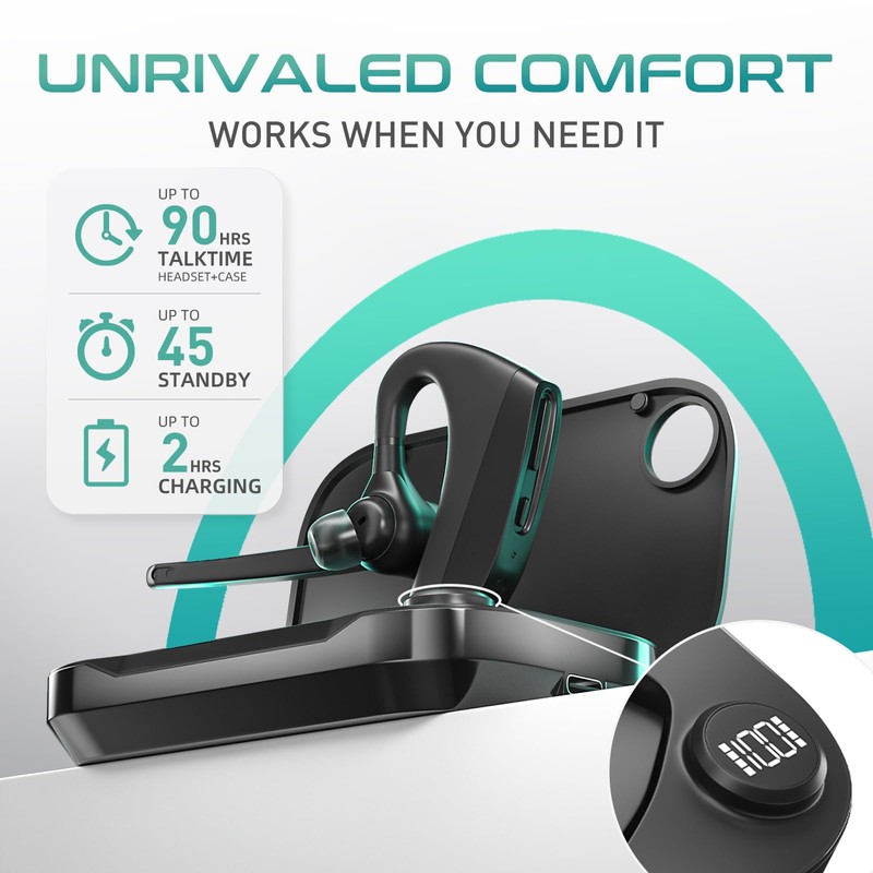 - [Enhanced Call Clarity]: Your business deserves top-notch audio quality, ensuring clear conversations wherever you work with Bluetooth headphones. Advanced noise-canceling technology delivers crystal-clear calls, maintaining a professional tone whether you're at home, in the office, or traveling