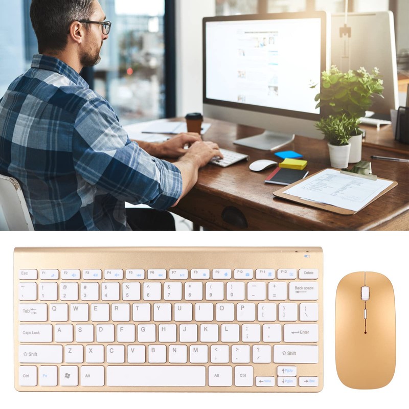Wireless Keyboard and Mouse Combo, Compact Wireless Keyboard and Mouse Set, Ultra Thin Waterproof Keyboard Power Saving USB Mouse Set, for Computer Laptop PC (Gold)
