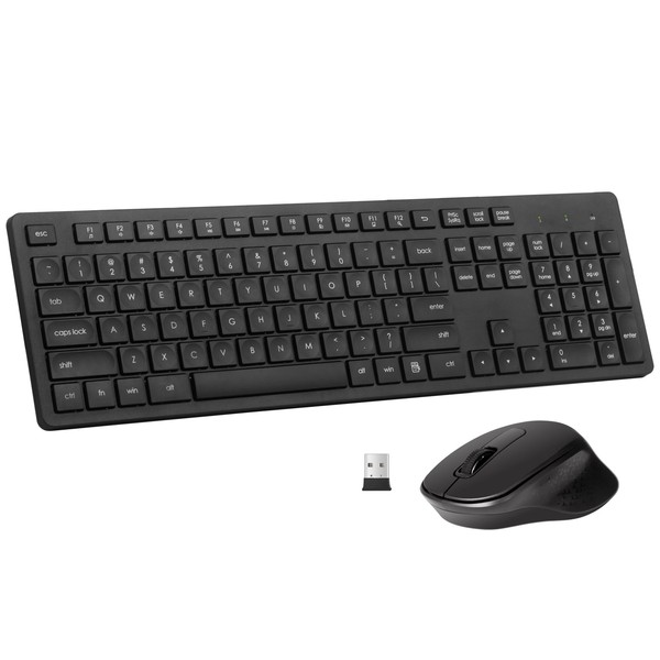 Wireless Keyboard and Mouse Combo, Quiet and Soft 2.4G Full Size Computer Keyboard and Ergonomic Wireless Mouse for Windows, Mac Desktop/Laptop/PC/PS, Black