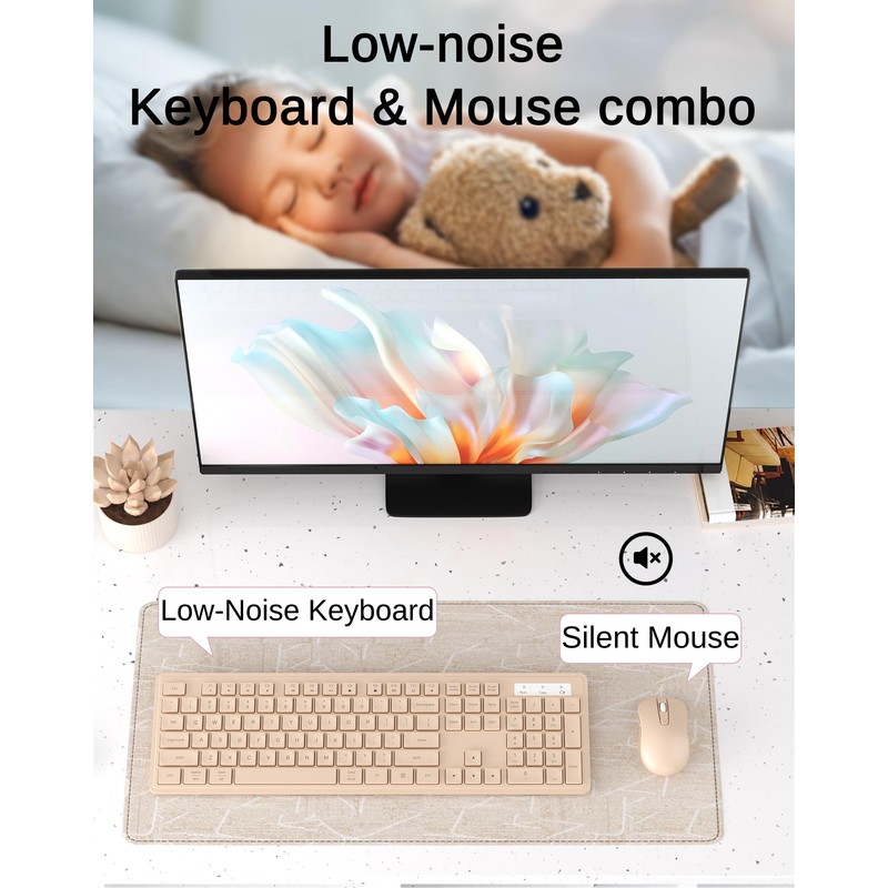 - [ Quiet Keyboard & Mouse ] The keyboard's noise-reducing keys and the silent click mouse ensure that you can work without missing a sound or disturbing your surroundings. The keyboard's noise-reduced keys provide a soft and comfortable typing experience, with minimal noise.
