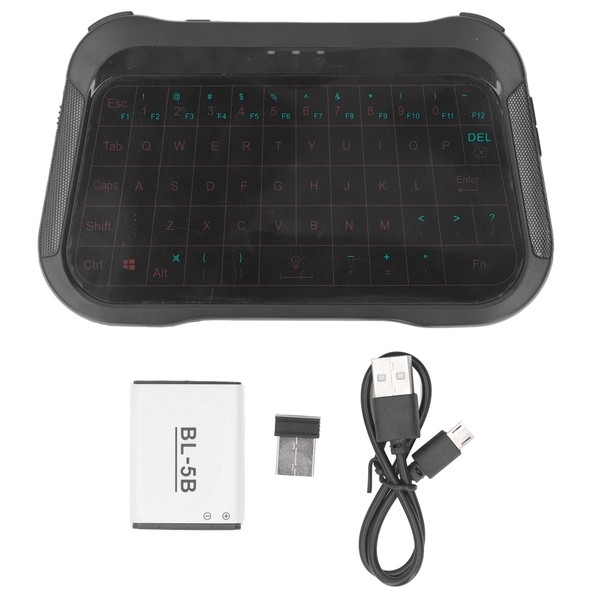 1、PREMIUM MATERIAL: It is made of premium ABS material, which is sturdy and durable, able to withstand prolonged use without being easily damaged, and has a long service life. 2、PLUG AND PLAY: This wireless keyboard with touchpad connects via the included USB dongle, plug and play, easy to use and convenient to carry, meets the needs of various usage scenarios. 3、INNOVATIVE DESIGN: Compact and portable design with an innovative shape, perfect for devices such as for RasPi series, for Android, HTPC and PC keyboards. 4、SOFT TOUCH KEYS: Featuring soft touch keys for easy and accelerated typing input, enabling users to select what they need faster and more conveniently. It improves the operation efficiency and comfort. 5、MULTIFUNCTIONAL: The keyboard features RGB backlighting, multimedia buttons, arrow keys, power switch, left and right buttons, and scroll wheel. Built in rechargeable lithium ion battery makes the user experience more convenient.