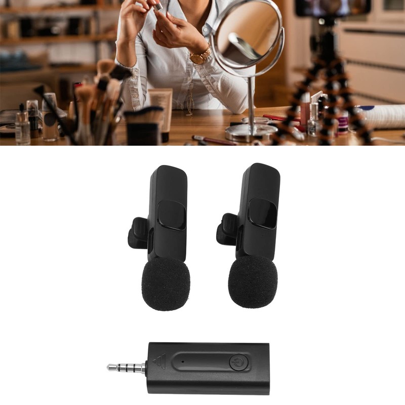 - APPLICATION: 1 for 2 wireless lavalier mic can realize the use of live webcast, video vlog shooting, program interview, interview recording, video teaching and other occasion.