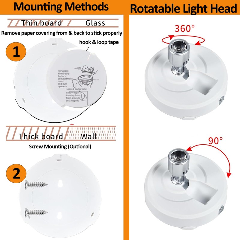 - Easy to Install & Widely Use: Easy to install accent light with provided hook and loop tape or screws. Can use indoor anywhere like basement, hutch, pantry, wardrobe, bookcase, shelf, hallway, kitchen, cabinet, closet, jewelry display, decorative shelf or highlight Christmas decorations, art display, painting, picture, wall photograph, artwork, statue, model, dartboard, portraits, plants
