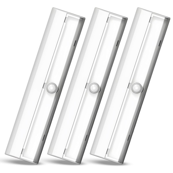 Brilliant Evolution Wireless LED Stair Lights with Motion Sensor - 3-Pack Battery Operated Night Light for Indoor Stairs, Hallways, and Closets - Stick On Motion Lights - 3000K Warm White - 7x2-Inch