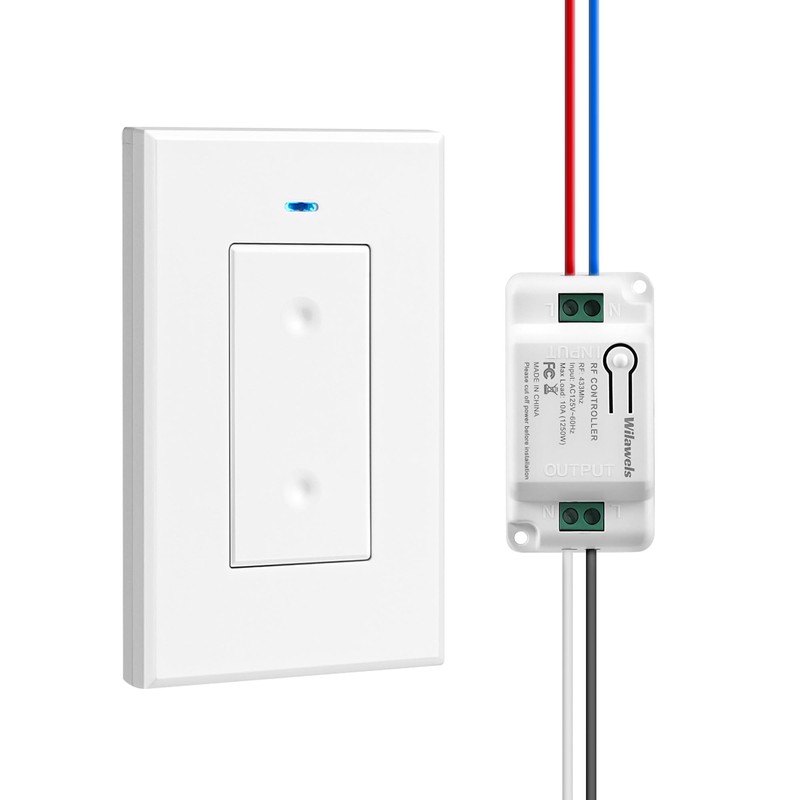 Wireless Light Switch and Receiver Kit, WILAWELS Wireless On Off Switches for Ceiling Light, Fan, Lamp, Moveable Remote Wall Switch, 100FT RF Range, No in-Wall Wiring Required, Pre-Programmed