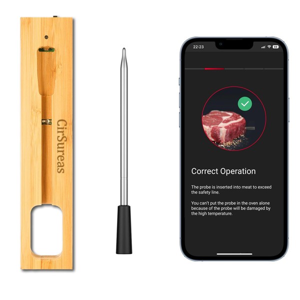 - 【Smarter & Simpler APP】The wireless thermometer comes with ten built-in recipes, such as beef, veal, lamb, and chicken. It's compatible with any iOS/Android device, serves up restaurant-quality meals with help from our built-in meat thermometer wireless predictive time and temperature technology.