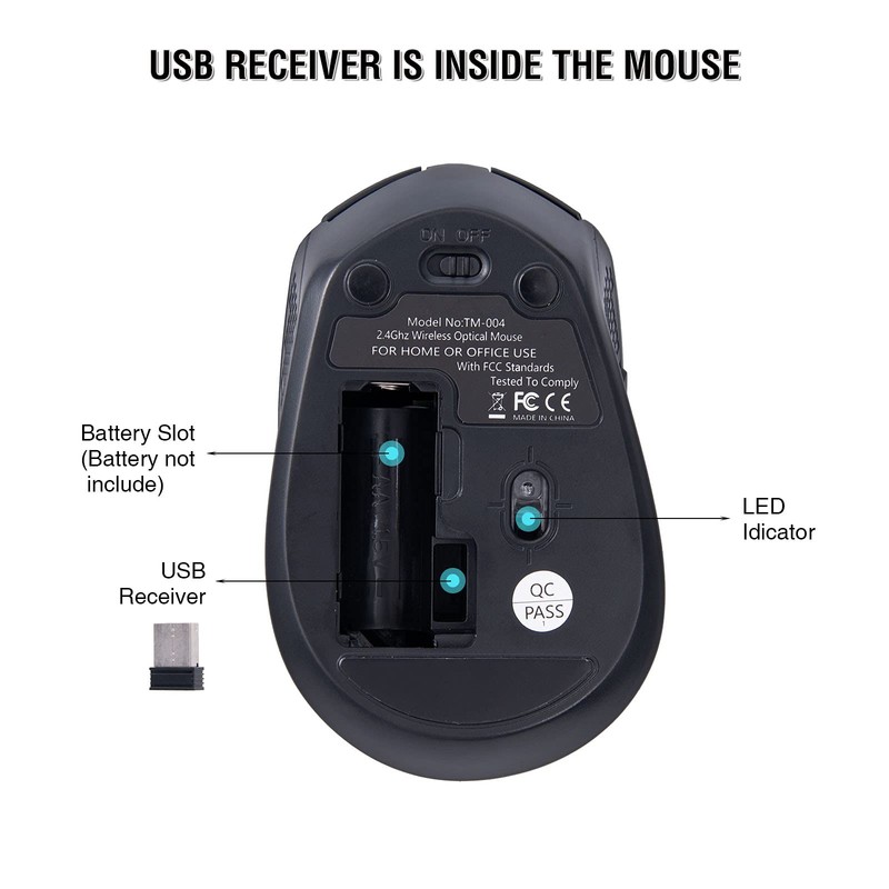 - 【Plug & Play design bring convenience to you】After pluging the USB receiver(stored in the battery slot) into the computer,you can start using it,no drivers need to be installed.The 2.4 GHz wireless mouse provides a fast ,powerful, reliable connection, effective up to 15 meters of range, effectively eliminates delays, dropouts, and interference.