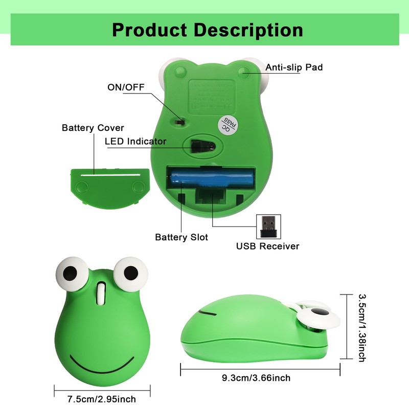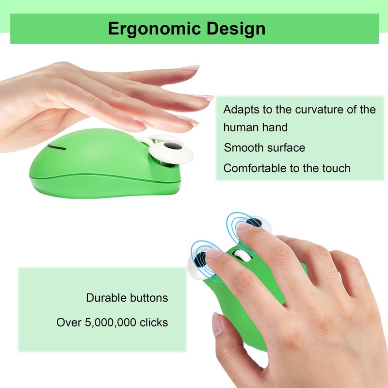 - 【Cute Cartoon Frog Design】- This cute wireless mouse for laptop is designed with cute animal frog shape, the appearance attracts people's eyes and adds fun to your typing process.