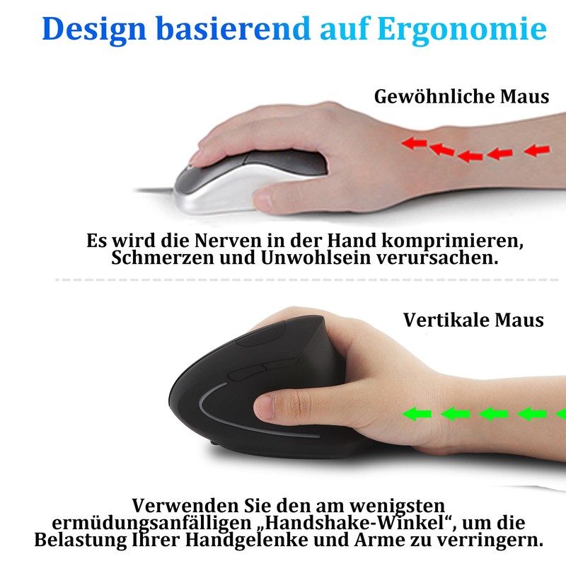 • Unique vertical mouse: this ergonomic mouse is soft and comfortable in the hand. Their unique vertical shape reduces muscle tension in your arms and adapts perfectly to hands of all shapes and sizes. The vertical design provides better support for your forearms and minimises wrist pain caused by twisting. They stay comfortable even after hours of clicking, tracking and scrolling. It relieves the wrist and hand of right-handed people.