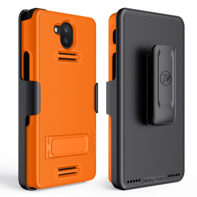 Wireless ProTech Case Compatible with Sonim XP10 (XP9900), Shell Case and Belt Clip Holster Combo with Kickstand and Screen Protector (Orange)