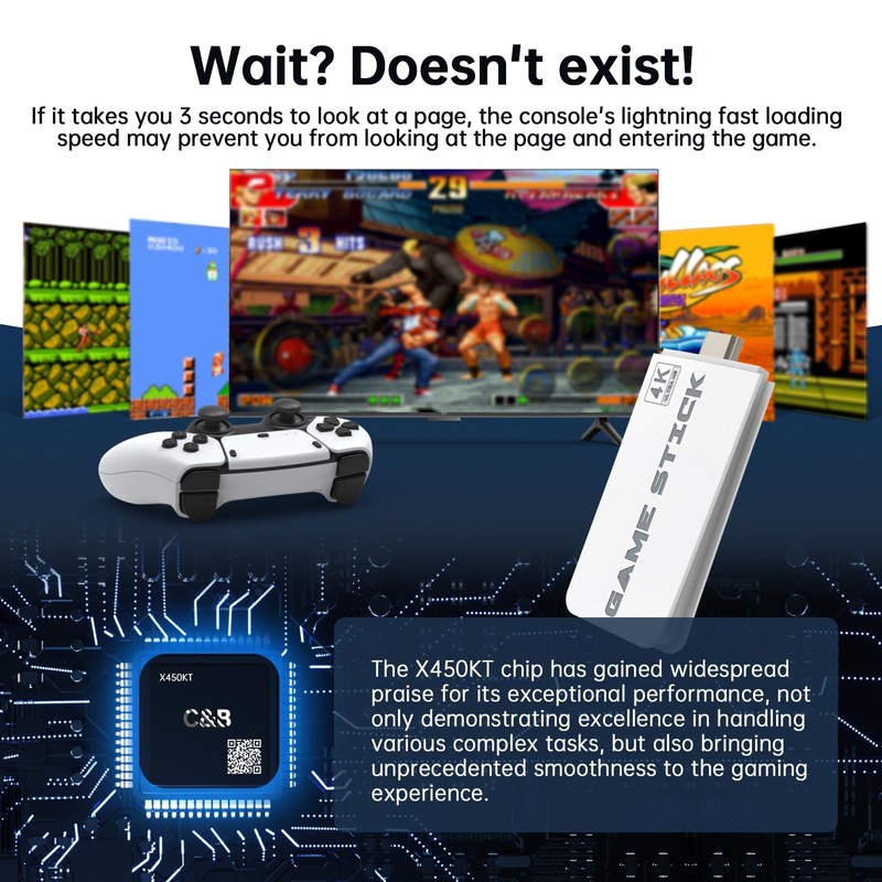 - Quick and easy access: The game stick 4K offers lightning-fast loading speed and supports up to 128GB TF card expansion, which means that searching for the retro drive game stick you want to play is a breeze. Plus, with its ample storage capacity, you'll never have to worry about missing out on your favourite video games.