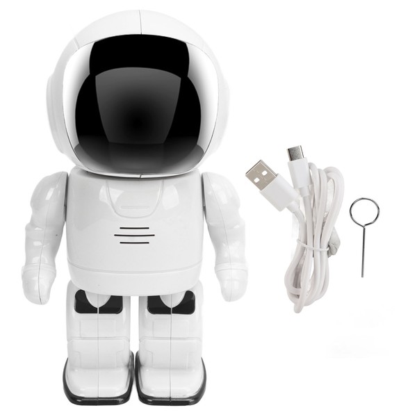 1、HD ROTATABLE: Wireless camera with 1080P HD image quality, image clearer. Swipe left and right on the phone to support horizontal 360 degree rotation and easily change the monitoring angle 2、CLEAR NIGHT VIEWING: Wireless security camera automatically sensing at night, turn on infrared night viewing, present a clear picture 3、TWO WAY CALLS: Home security cameras support two way voice calls, built in speakers and noise cancelling microphones, communication is barrier free, sound quality is clear without delay, you can care for your family no matter where you are 4、RECORDING AND STORAGE: Download the APP to easily and quickly play and loop video recording. The robot camera support large memory and small memory cards (not included), and can be played without network 5、SUPPORT SYSTEM: Astronaut robot home security camera supports for Android and for iOS systems, wireless remote monitoring, watch live video on the app. At the same time, the main account can authorize multiple people to watch at the same time, and can also be cancelled at any time