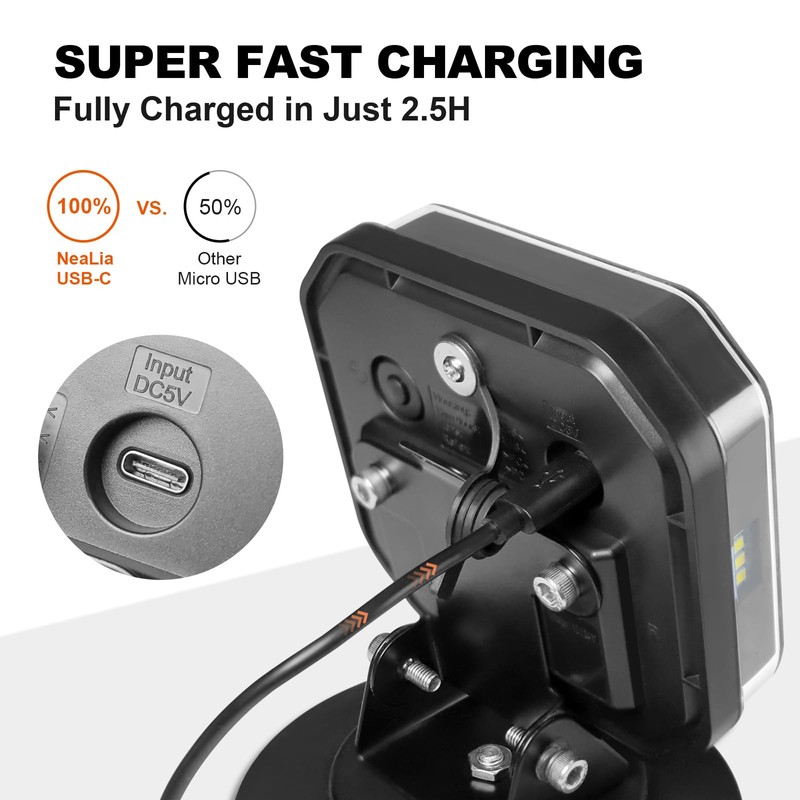 NeaLia Wireless Trailer Lights 110° Rotatable, Magnetic LED Trailer Light for Towing Truck RV, Rechargeable Tail Tow Lights Kit for Camper Boat Caravan Turn Signal Brake Reverse Stop, IP67 Waterproof
