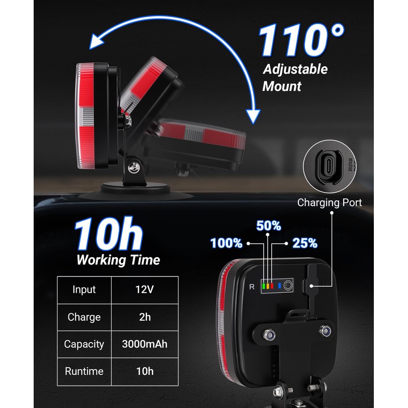 - IP67 Waterproof & Durable. Built to last, these lights feature a sealed design and an IP67 waterproof rating, protecting them from rain, snow, dirt, and sand. With a 30M wireless range, they charge fully in 4 hours and offer up to 10 hours of runtime. Designed to operate in extreme temperatures from -25°C to 65°C, they’re ready for any environment.