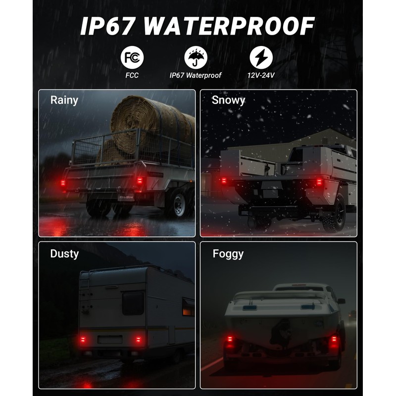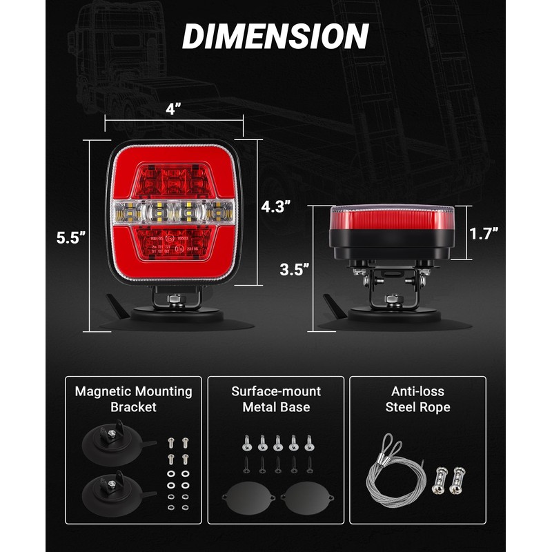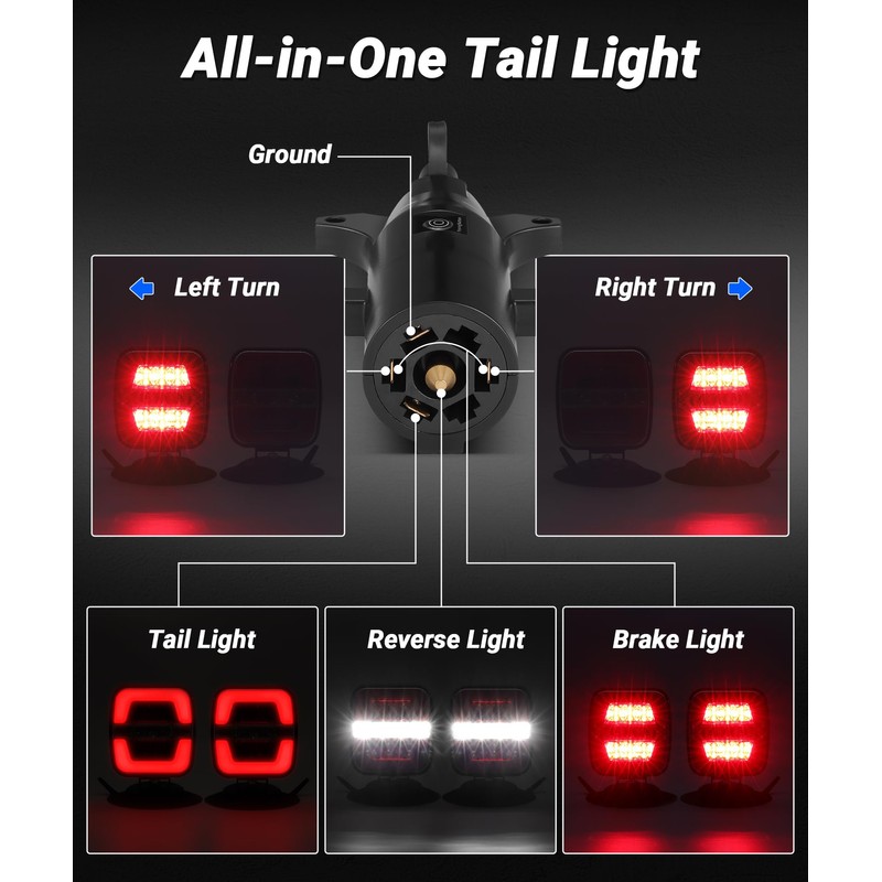 - Outstanding Brightness. Each trailer light features 26 powerful LEDs: 16 for tail lights, 6 for brake lights and turn signals, 4 for license plate illumination, 1 blue LED for power indicator, and 3 colorful LEDs for battery status. The bright LEDs ensure your stop, turn, and running lights are visible from up to one mile away, operating in sync with your vehicle’s headlights, brakes, and turn signals for enhanced safety.