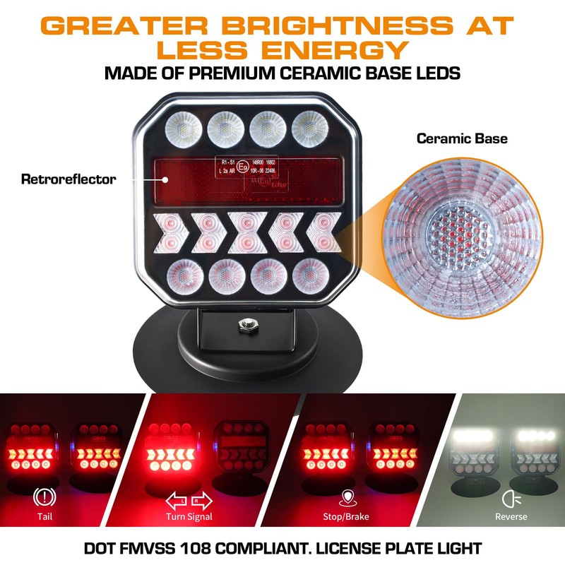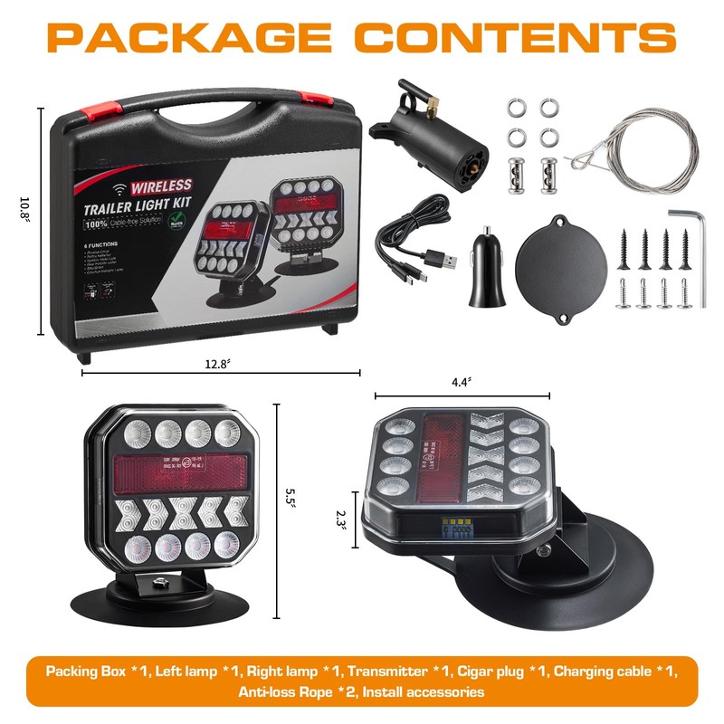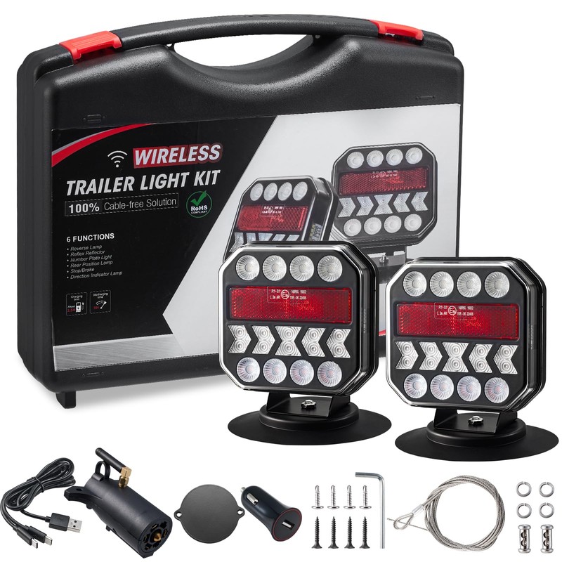 Hifybaty Wireless Trailer Lights, USB-C Magnetic Wireless Tow Light with Retroreflectors, Adjustable, Rechargeable Towing Light Kit with Powerful Suction Base for Trucks, Boat, RV, Vehicle, Caravan