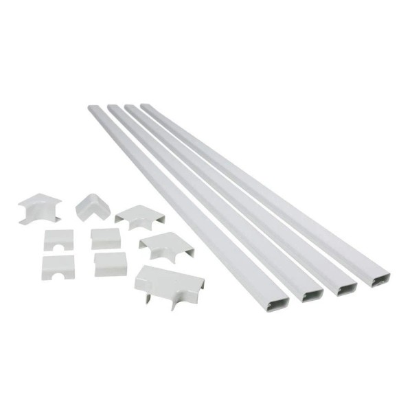 - VALUE OFFER: The cord cover includes 4x Cord Channels (45 inch x 1.5 inch x .75 inch each which totals 180" of cord cover), 1x Outside Elbow, 1x Inside Elbow, 1x "T" Fitting, 2x Flat Elbows, 2x Couplings, and 2x Exit Fittings