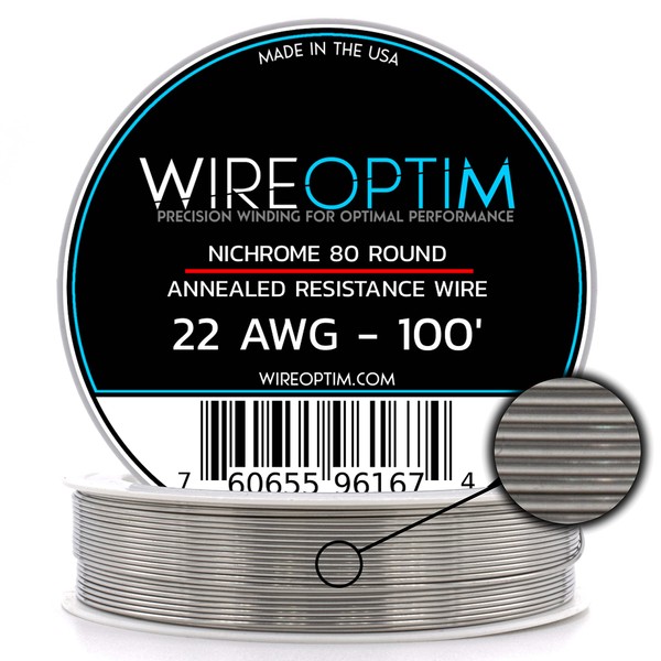 WIREOPTIM - 22 AWG - Nichrome 80 Resistance Wire - 100 Feet