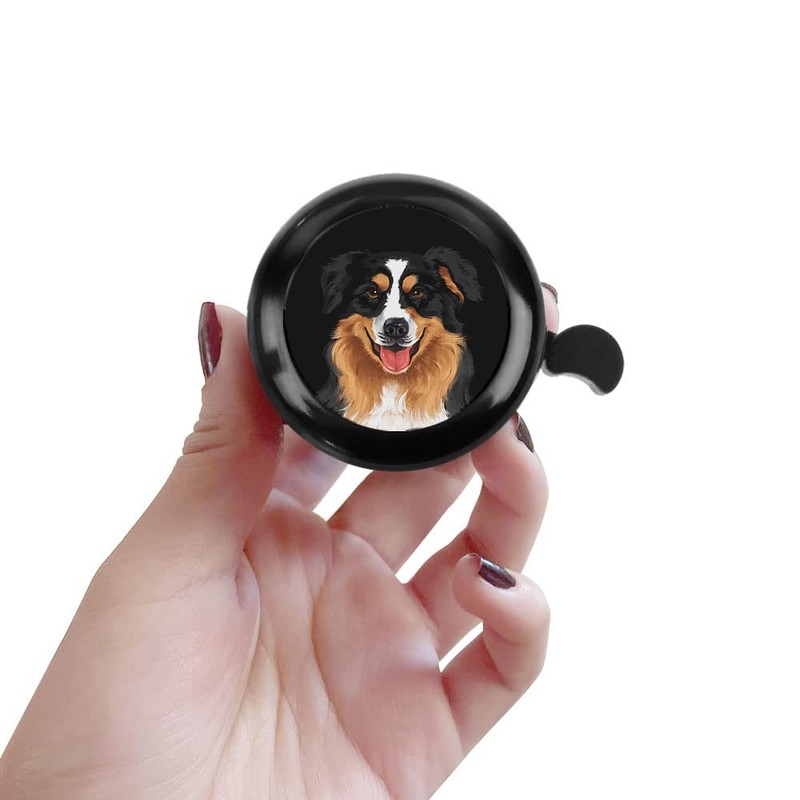 WIRESTER Black Aluminum Round Bike Bell, Classic Ring Bicycle Bell, Bike Accessories Bell Ring for Adults Kids Girls Boys - Cute Black Aussie Australian Shepherd Dog
