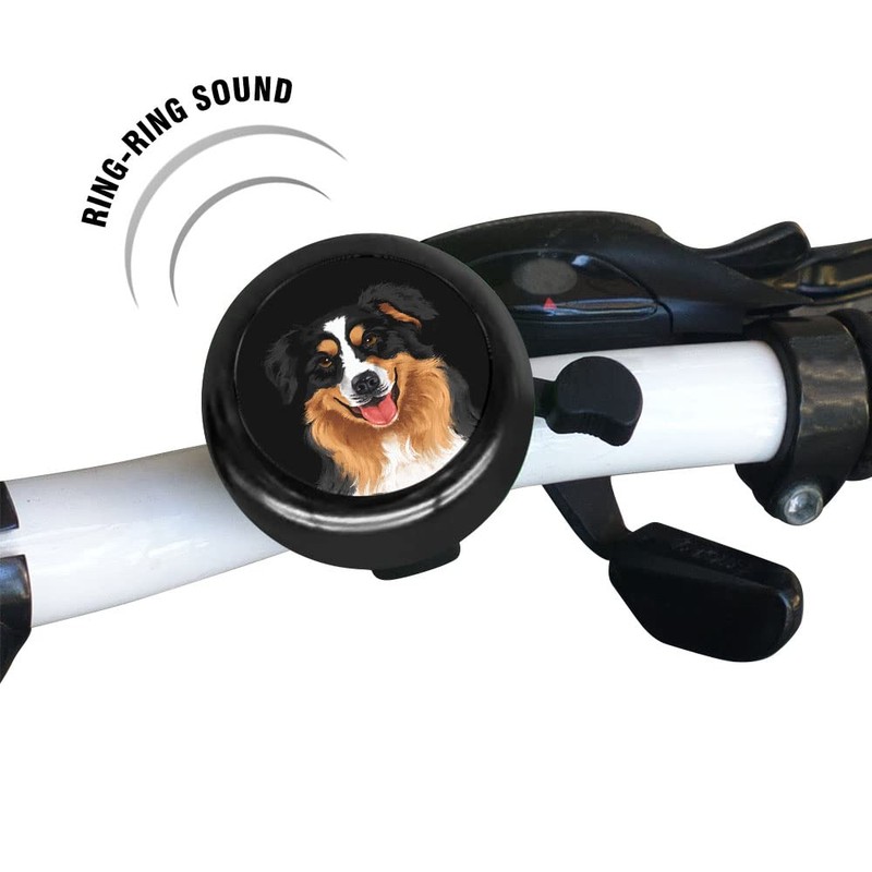 WIRESTER Black Aluminum Round Bike Bell, Classic Ring Bicycle Bell, Bike Accessories Bell Ring for Adults Kids Girls Boys - Cute Black Aussie Australian Shepherd Dog