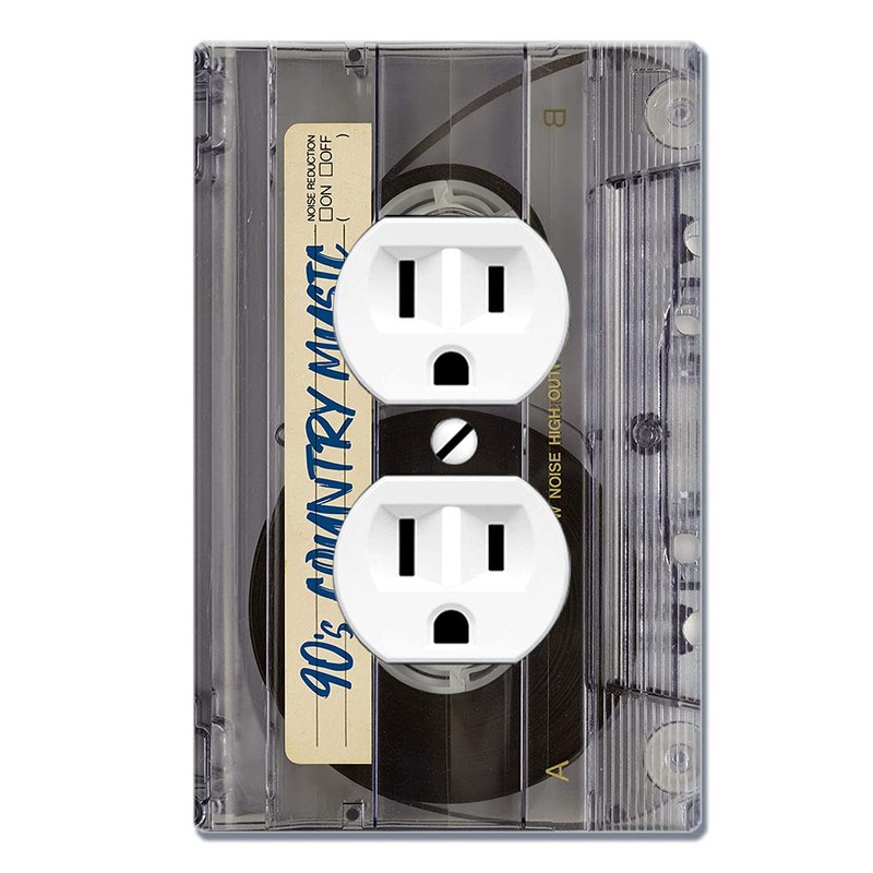 WIRESTER Duplex Outlet Cover Wall Plate/Switch Plate - Retro Clear Cassette Tape Country Music