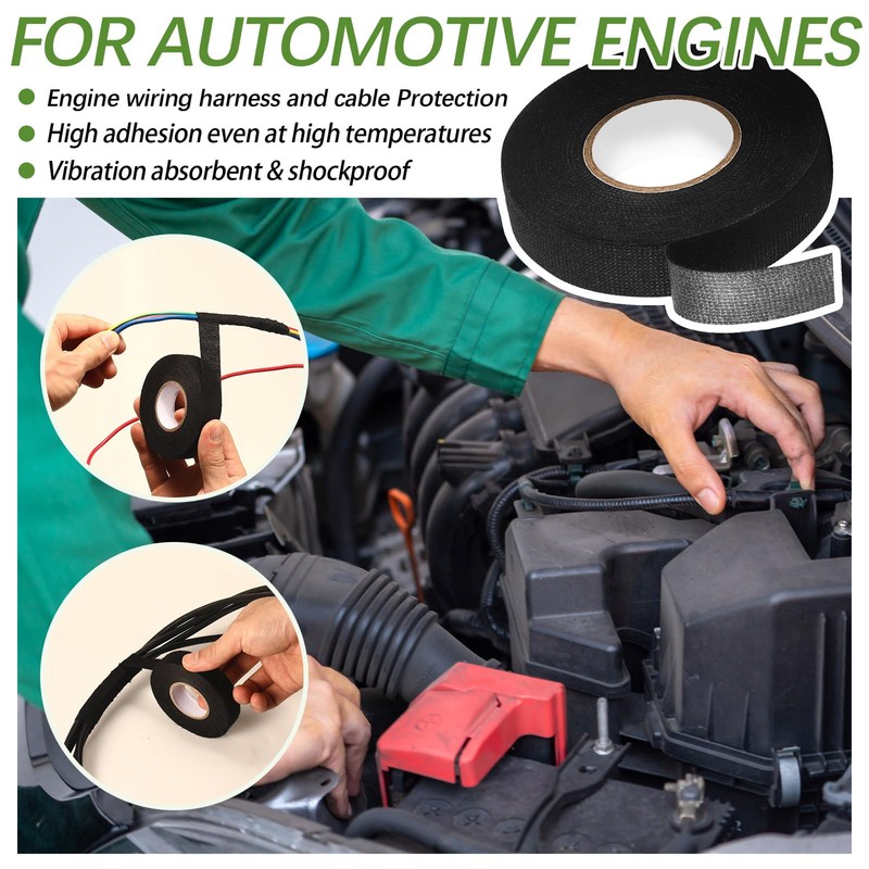 - Professional Material: The self-adhesive tape is made of polyester non-woven fabric with strong acrylic pressure sensitive adhesive. High viscosity, heat resistance (-40°F to 257°F), soft and corrosion-resistant,perfect for automotive engine/circuit maintenance.