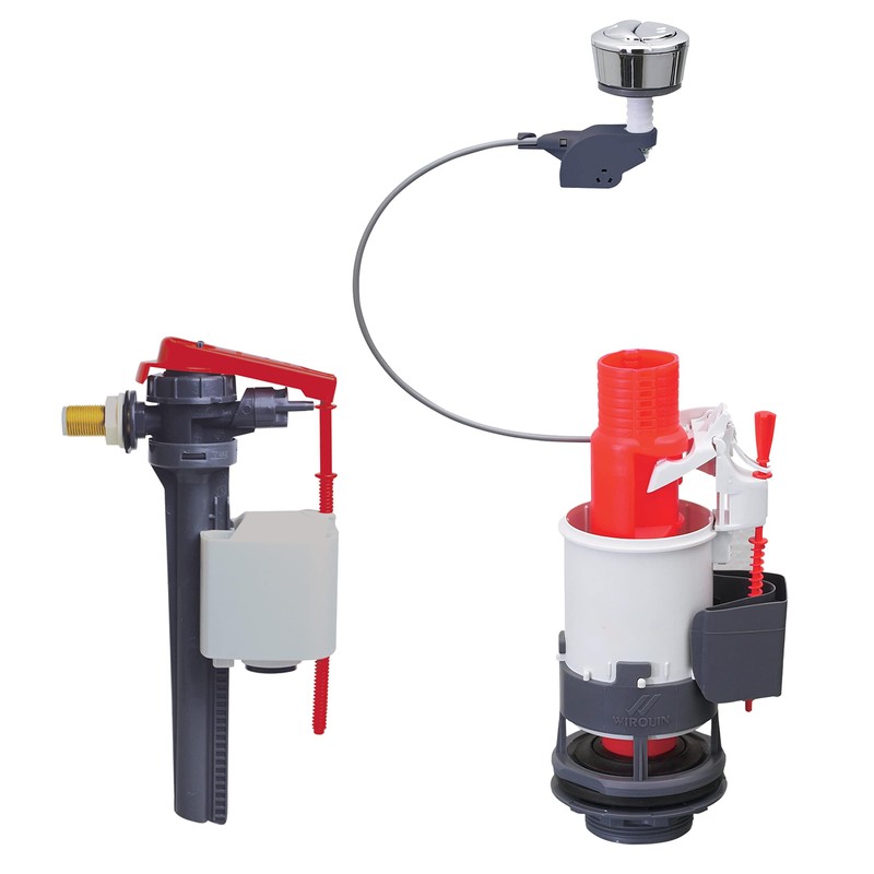 WIRQUIN Mécanisme de WC MW² double poussoirs a câble + Robinet flotteur Jollyfill latéral
