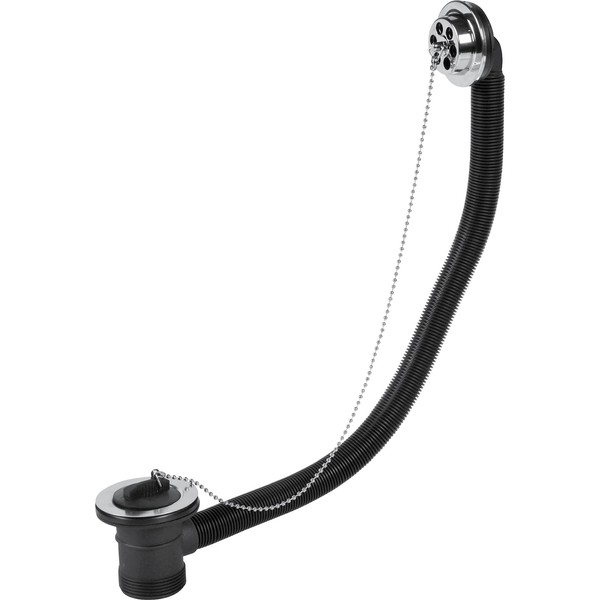 Wirquin WHO73SS 1."5 Bath Waste with Black Plastic Plug, Chrome Chain and External Overflow