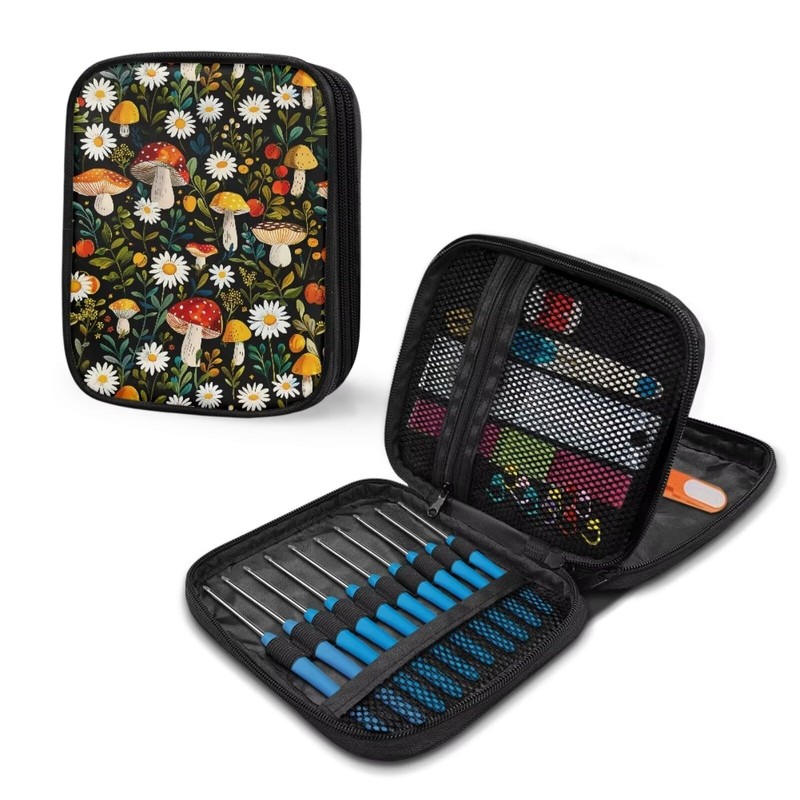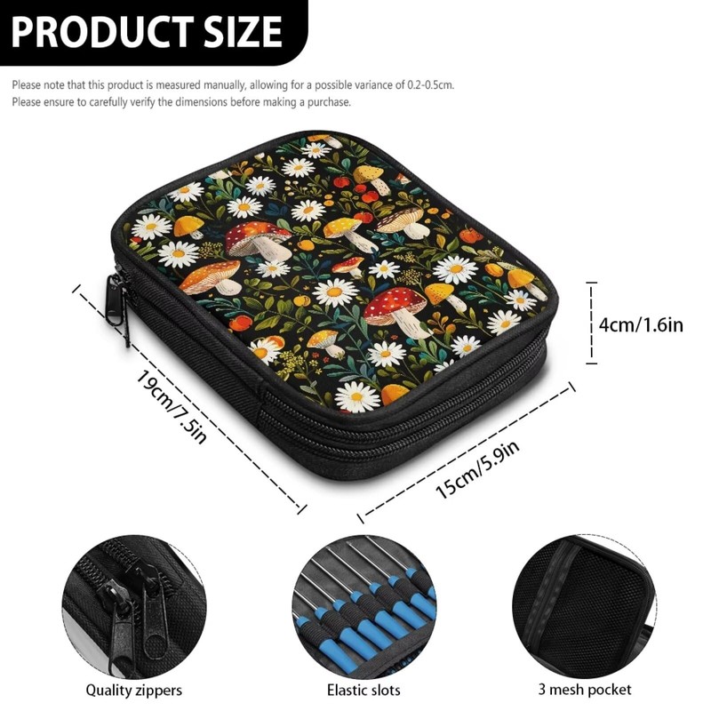 Wiryuouvt Cute Mushroom Crochet Hook Holder Organizer Daisy Crochet Needle Holder Case Knitting Tools Crochet Storage Box Suitable for Travelling Outings Picnics Work Large Capacity
