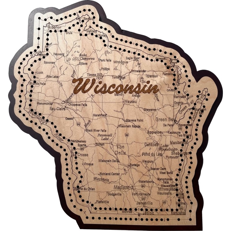Wisconsin, Badgers Wisconsin Shaped Road Map Cribbage Board