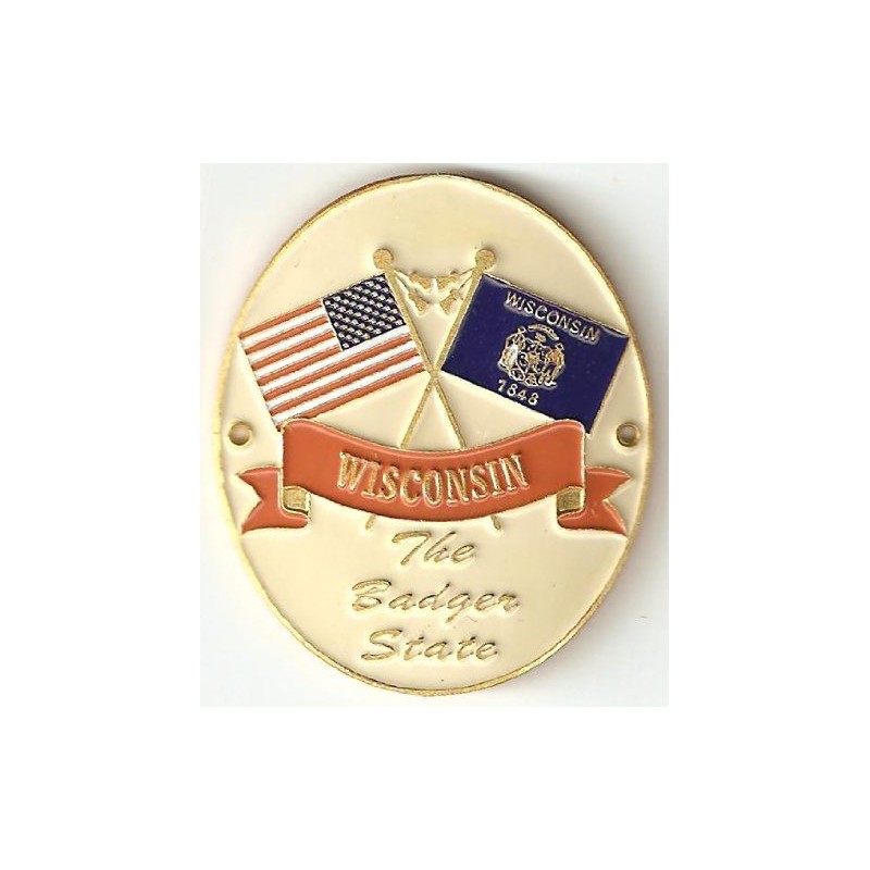 Wisconsin & United States of America Flags - Hiking Stick Medallion - The Badger State