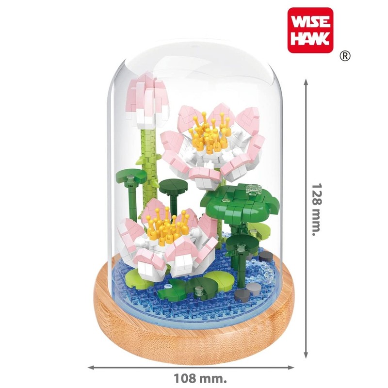 Wise Hawk Miniature Flower Building Blocks with Wooden Stand and Dome Cover Nilrose