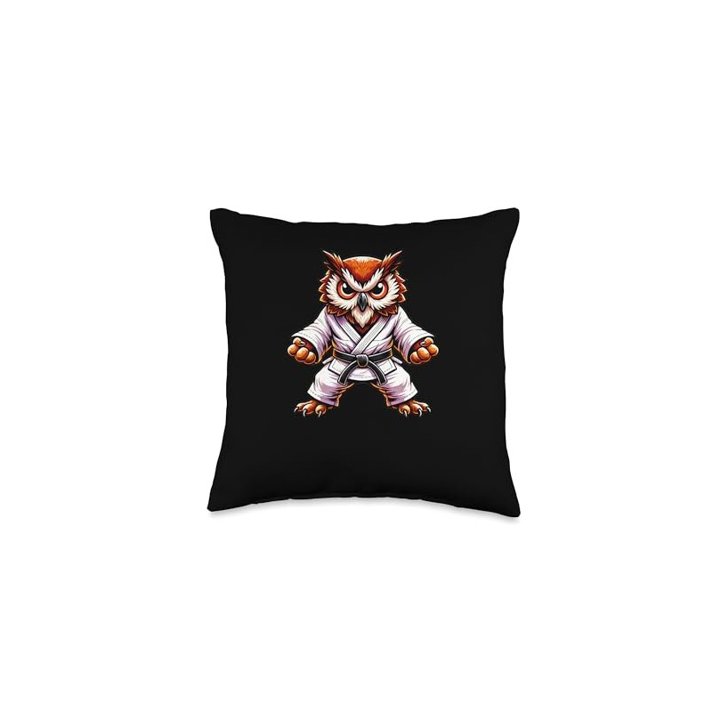 Wise Owl in Judo Gi - Japanese Martial Arts Judoka Throw Pillow