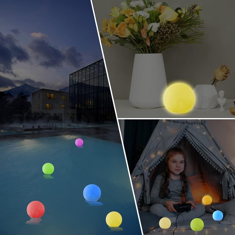 - đ¶ăMultiple usesăThe matte texture led ball shell can be used as a mood light to create an atmosphere and bring a different good mood. 4-inch led night lights can be placed in hotels, gardens, bedrooms, parties, weddings, dining tables, bathrooms, etc. At the same time, he is also a floating pool lamp, which brings unlimited fun to the parent-child bathing, and is a great gift.