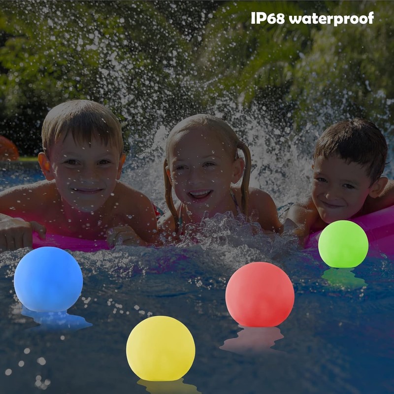 WISEAL Waterproof 4-Inch LED Floating Pool Lights, Rechargeable Orb Night Light for Kids, 16 RGBW Color-Changing Light Up Ball, Hot Tub Lights, Pool Accessories, Remote Control (1Pack)