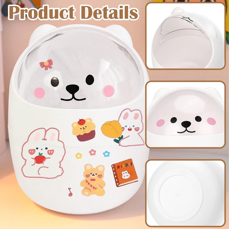 Wisebom Mini Table Bin with Lid, Portable Cute Cartoon Style Waste Bin, Table Trash Can with Stickers, Cute Mini Desktop Bin for Office, Dressing Table, Bedroom