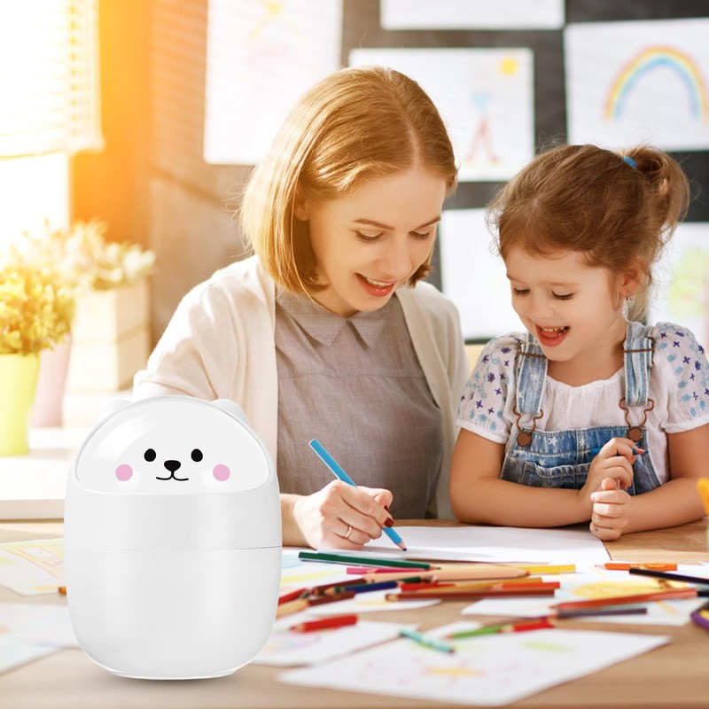 - Cute Cartoon Design The oval trash can has no sharp corners or burrs, which ensures safety. The cute little bear design brings a fun element to your daily life and makes your room look warmer and more enjoyable