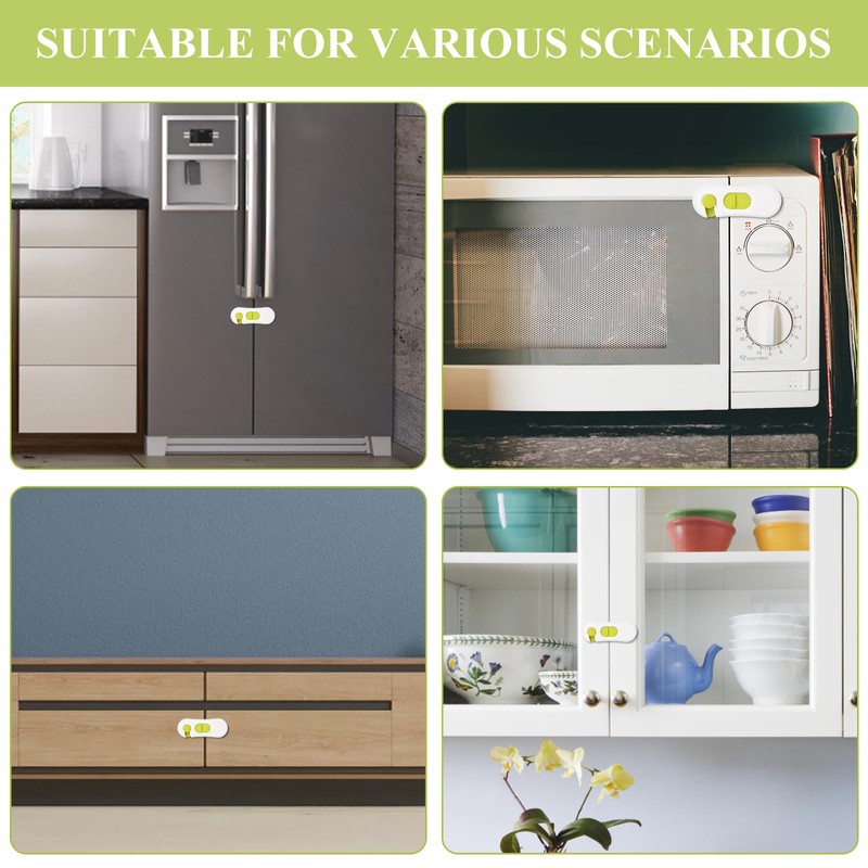 - Wide application: child locks can be used in a variety of scenarios, e.g. in mini fridges, double door refrigerators and various drawers, cabinets, cupboards, bookshelves and wine cabinets.