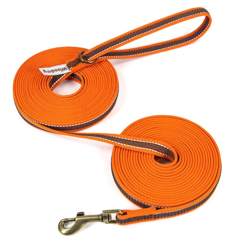 Wisedog Recall Lead for Dogs, Training Lead for Dogs, Long Lead, Non-Slip Recall Lead for Tracking, Camping, Games and Backyard, Orange, 10 m
