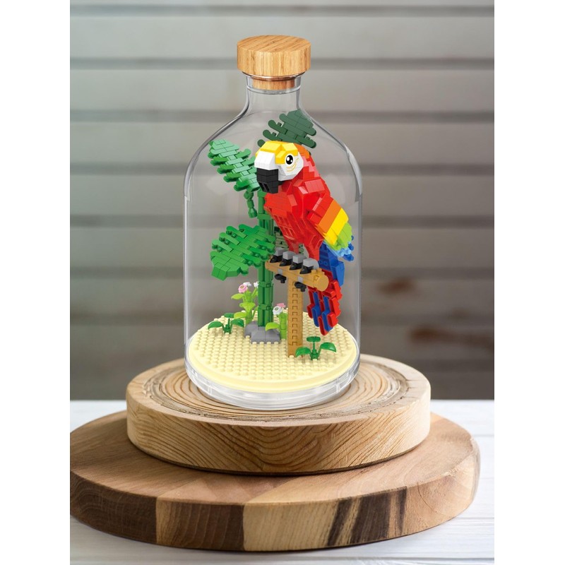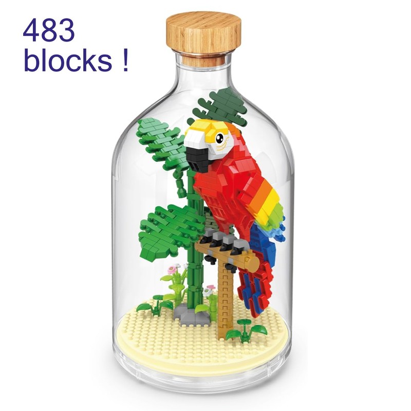 WiseHawk Kit of miniature blocks to assemble insects and small animals. Includes methacrylate bottle to protect the construction. Parrot