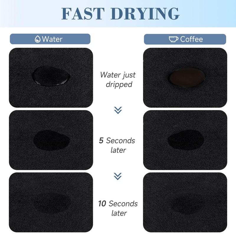- VERSATILE: the mat can be used as a drain pad, a coffee pad and a bathroom pad; the multifunctional drying pad can be placed anywhere you want to absorb moisture, such as on the shelf, under the sink or in the bathroom